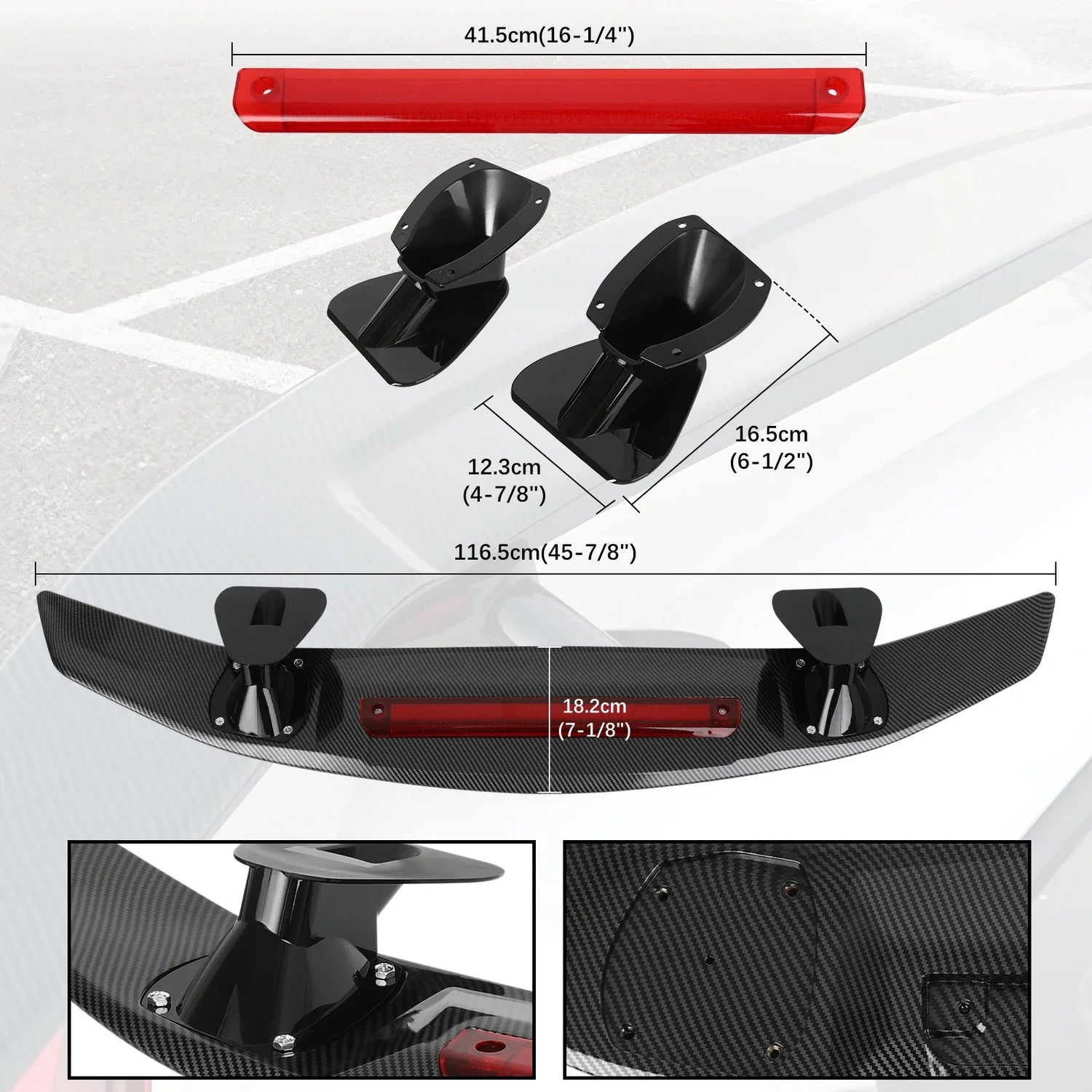 1. When the temperature is lower than 10°C (50°F), the adhesive force is weak, it will be better to heat the heat-sensitive double-sided tape with a hair dryer. After installation, the tape works at low temperature.2. If you want to be more secure, you can install it by drilling holes in the trunk.